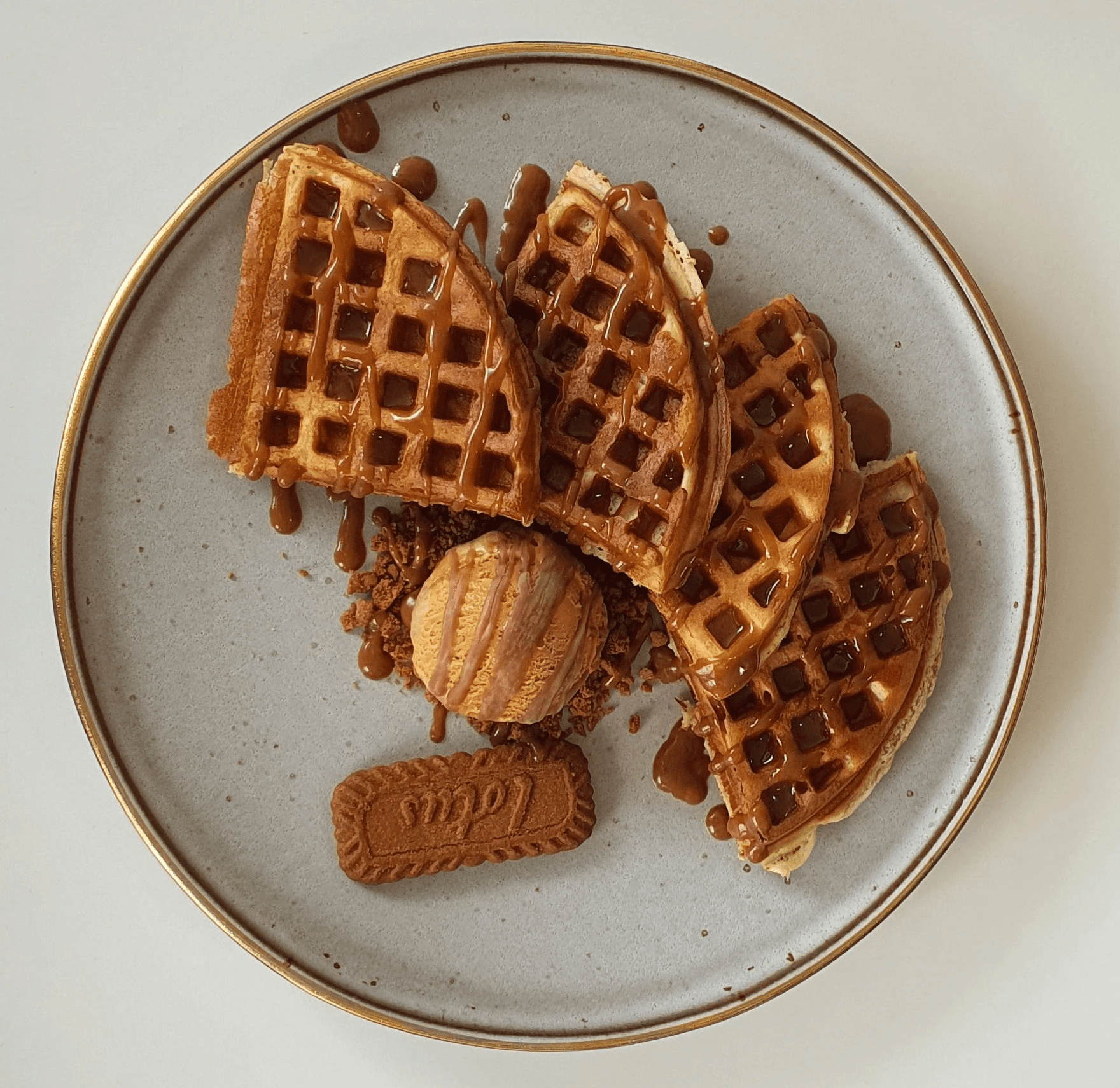 Gelado de Nata, Bolacha Lotus, Topping de Lotus, Chantilly e Bolacha Waffle