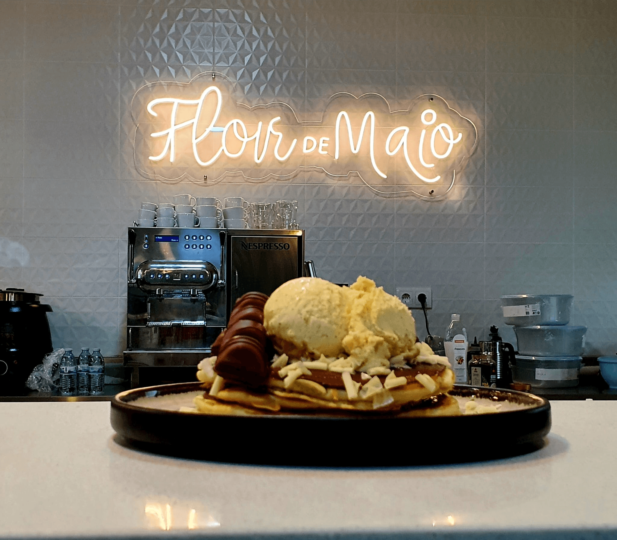 Gelado de Nata, Bolacha, Café, Doce de leite, Chantilly, Bolacha waffle