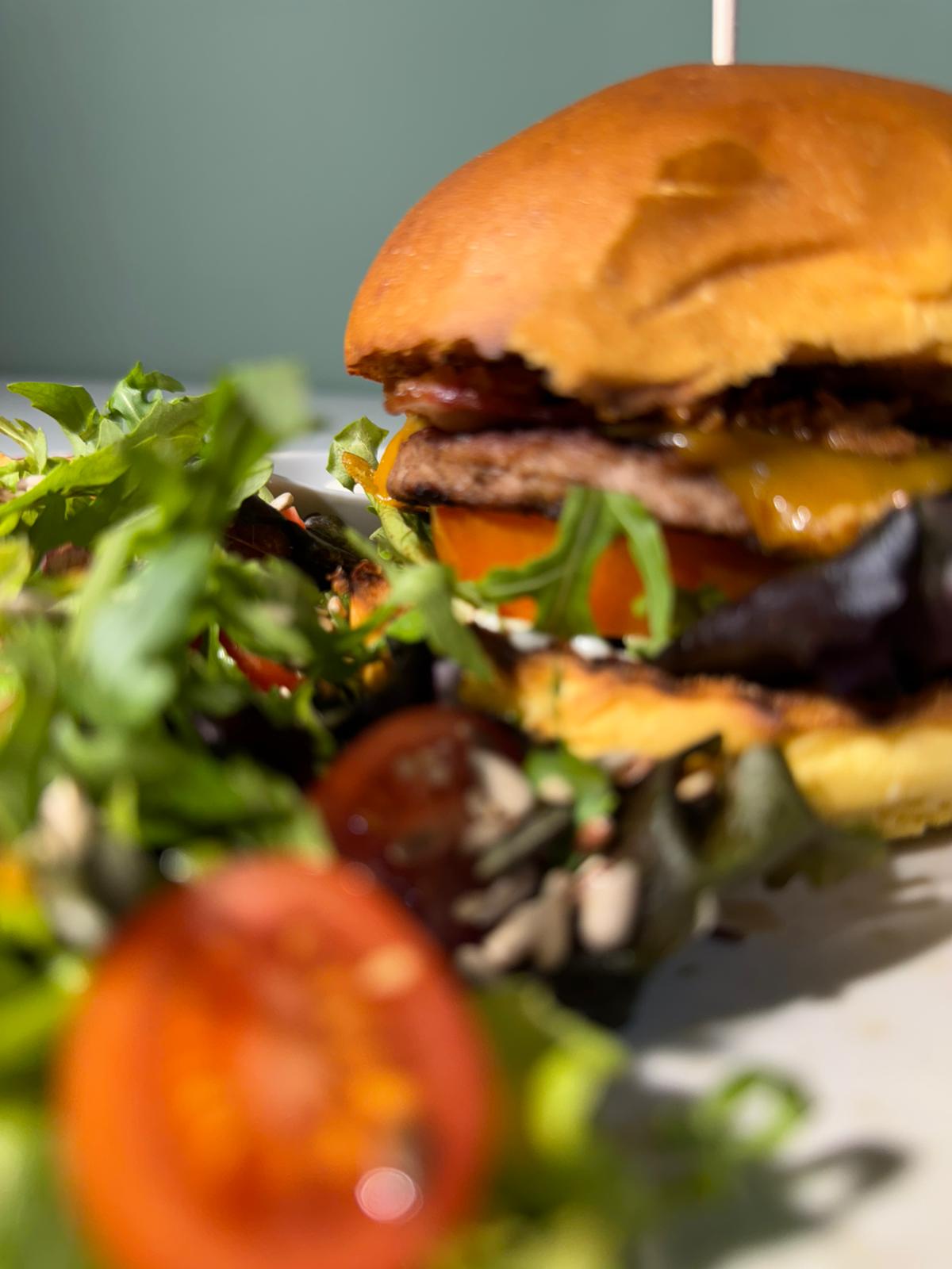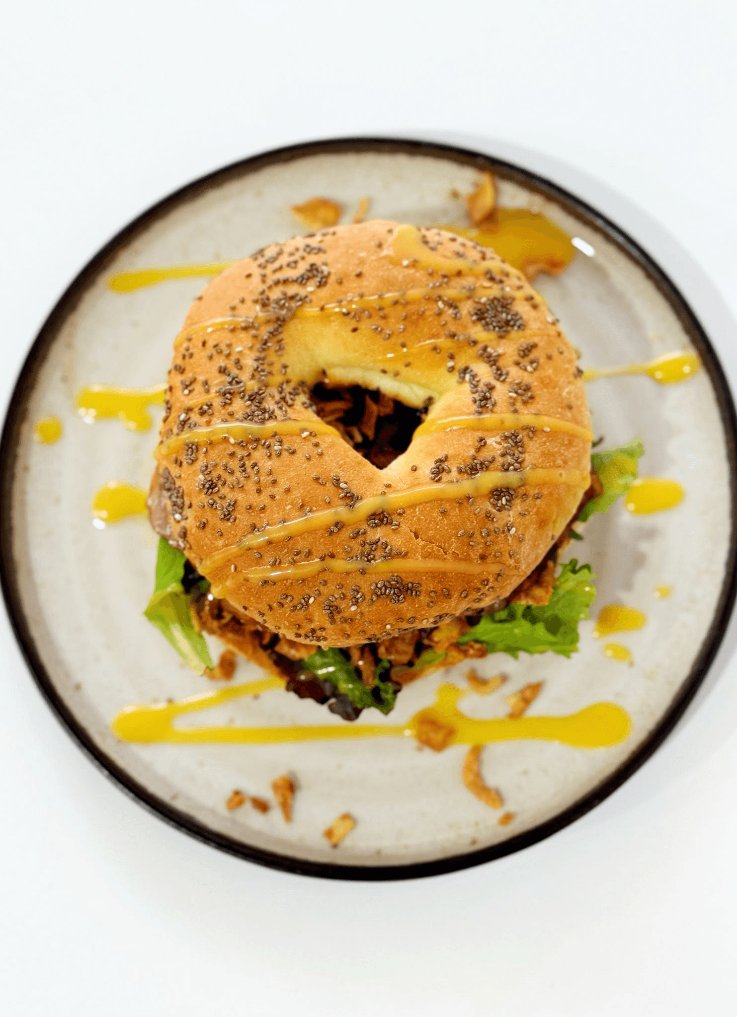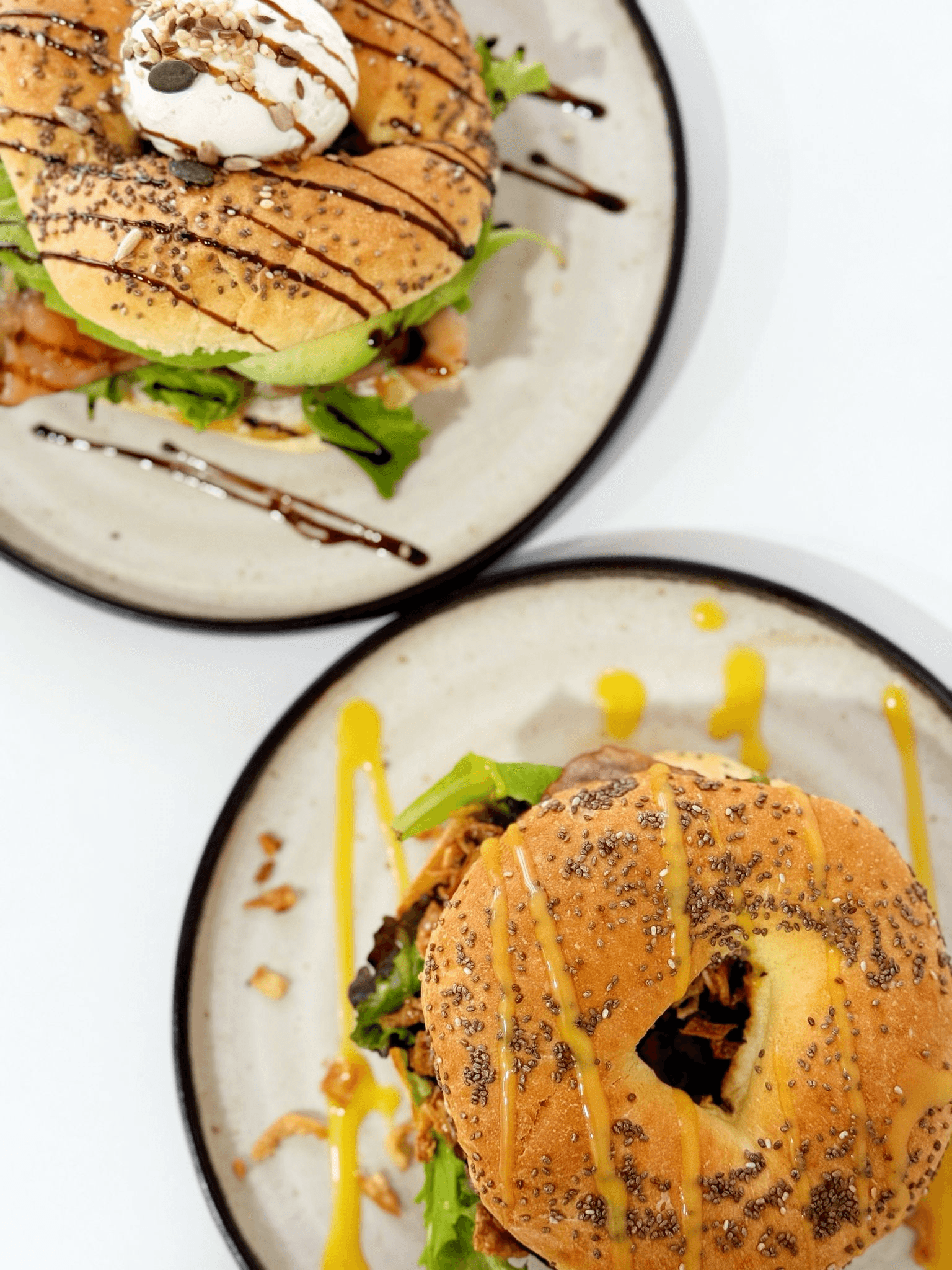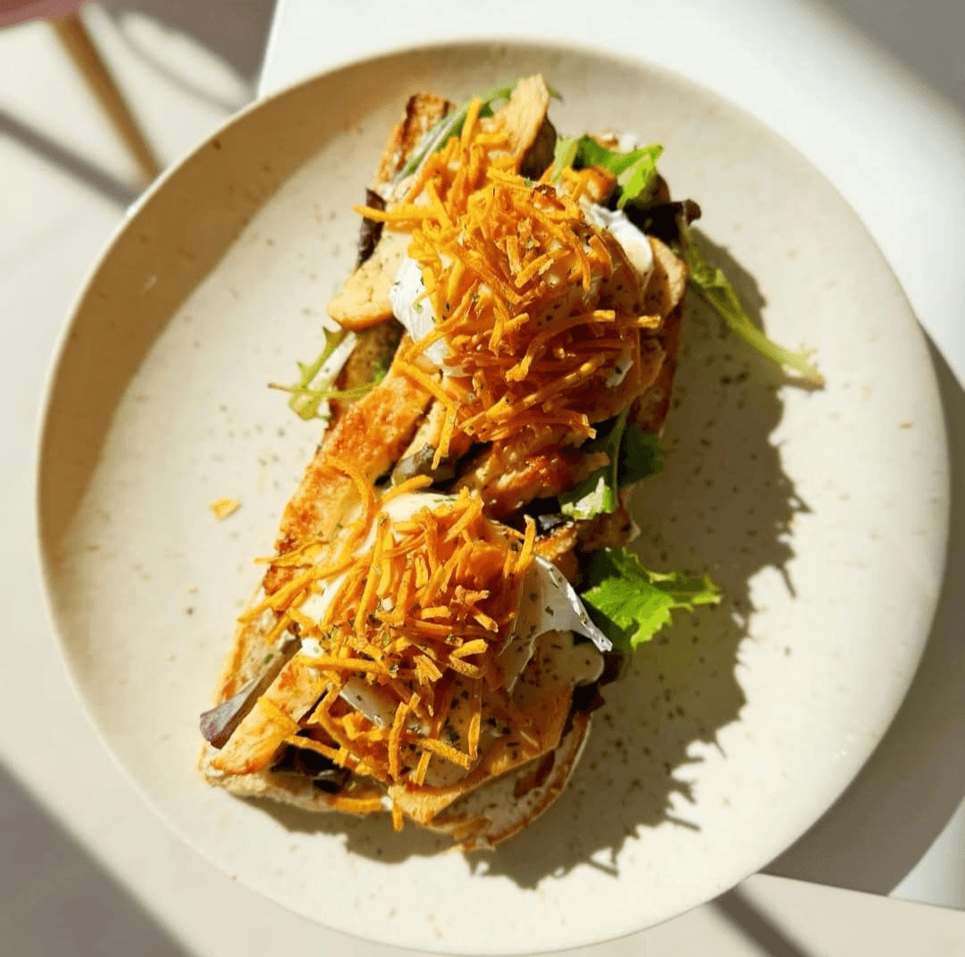 Queijo Creme, Mix de Alfaces, Tomate Cherry, Cogumelos Salteados, Cebola Fresca, Ovos Escalfados