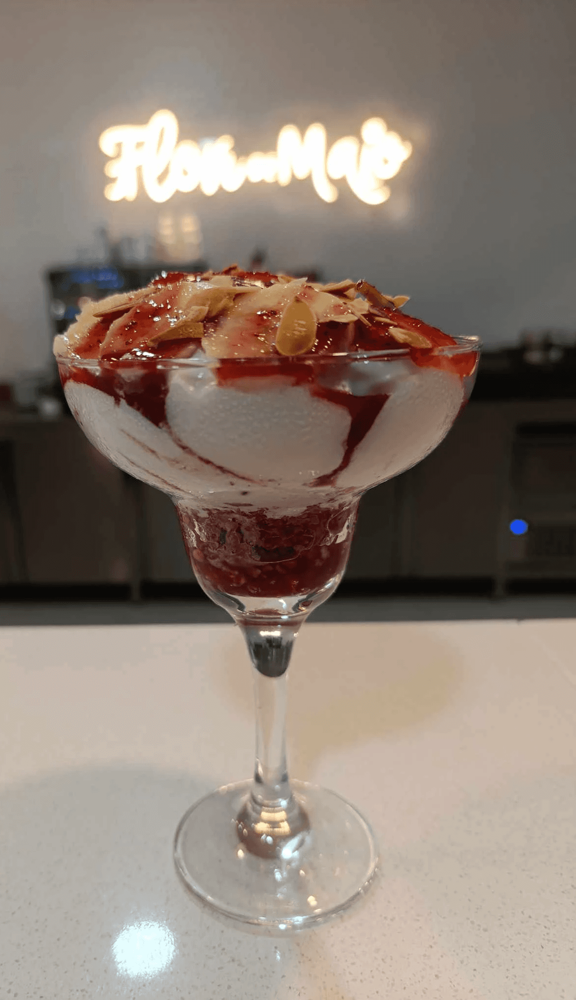 Frozen yogurt, Fruta, Muesli, Compota de frutos vermelhos e Amêndoa laminada