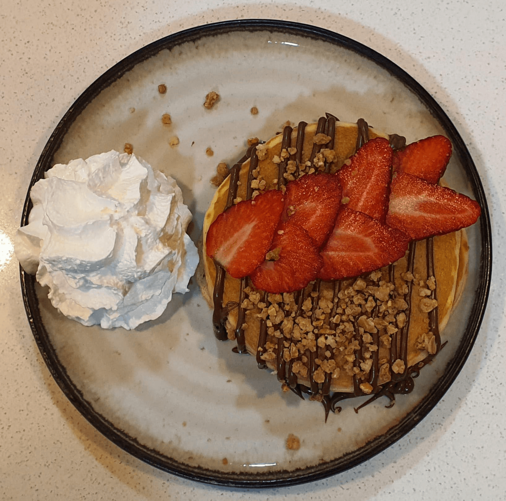 Wafle simples com 1 topping a escolha (Toppings : Nutella, Chocolate, Chocolate Branco, Mel, Xarope de Ácer, Caramelo, Caramelo salgado, Doce de Leite, Creme de Lotus, Manteiga de Amendoim, Morango)