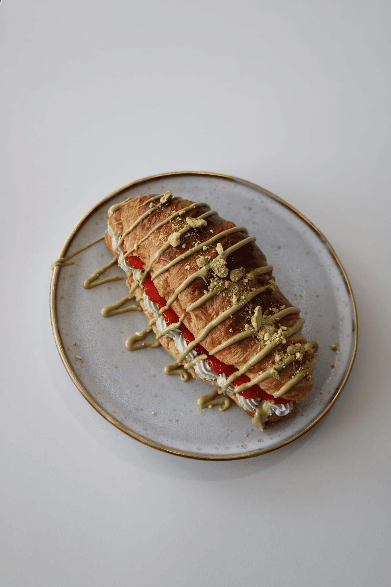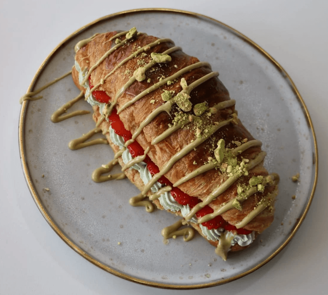 Croissant com creme de pistachio e morangos